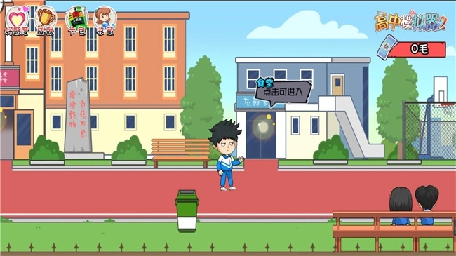 《高中生的一天》是一款主打模拟玩法的趣味休闲游戏。在游戏里,玩家将化身一名充满活力的高中生,踏入广阔的校园天地。你可以和场景中的各色人物畅快交流、互动,探索更多新奇有趣的内容,还能结识不少志同道合的朋友,重温青春时光里那些充满乐趣的玩法。游戏中精心雕琢的场景细节与色彩搭配,让玩家的体验感无比真实,仿佛真的重返了那段难忘的高中校园生活。