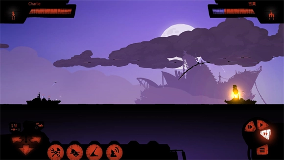 5、滑动屏幕可以移动视角,能观察对方舰船的动向。屏幕上方左侧的时玩家的血量,右侧的是敌人血量,当敌人血量为零时就可以通关。