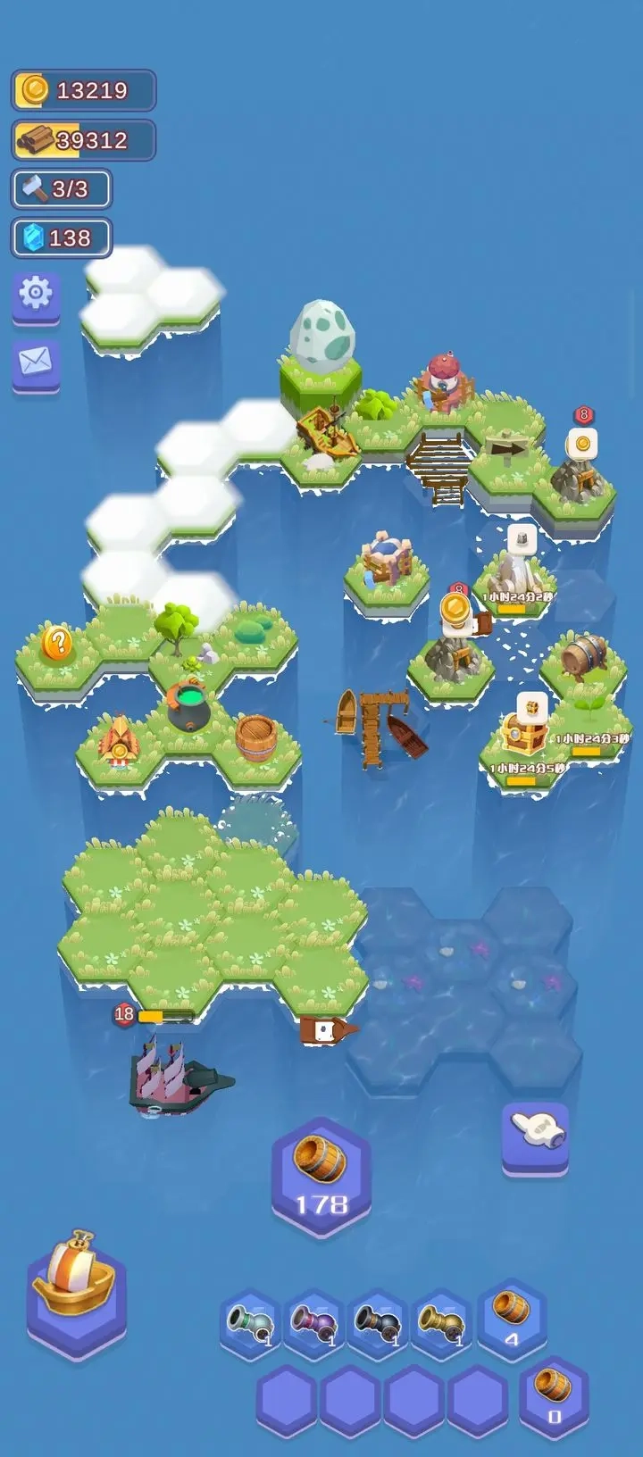 这是一款操作简易的模拟经营类游戏,玩家需持续探索未知岛屿以扩充自己的船队规模。随着关卡逐步深入,船队数量会不断增加,然而未知岛屿潜藏的危机也会愈发严峻。游戏全程仅需点击未知岛屿区域就能开启游玩,探索过程中会随机触发各类事件,可能是丰厚财富,也可能是突发危机,无论遭遇哪种情况,都能让你真切感受到航海冒险的刺激感。