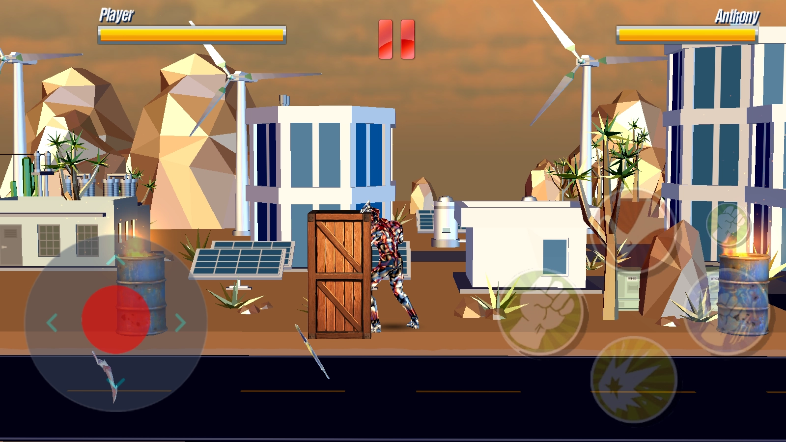 4、进入后,左侧的按键控制角色左右移动,右键可以使用拳脚攻击,也能跳跃起来,和防守。
