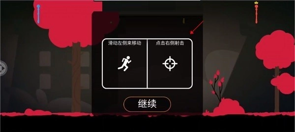 4、游戏开始,首先我们看到操作模式,左侧进行移动和跳跃,右侧的屏幕进行射击操作;