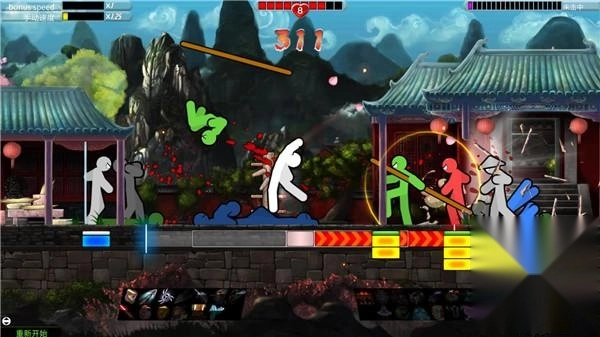 8、答案很简单:游戏的艺术风格和简单的机制结合的巧妙程度。虽然每次点击鼠标左右键对于玩家来说是个非常简单的事情,但是结合游戏中火柴人对敌人