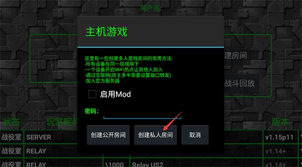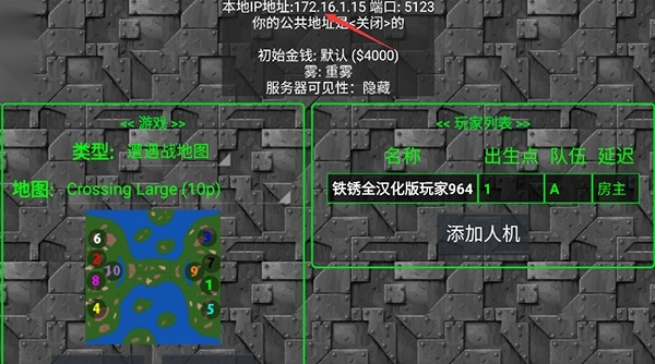 4、在最上方就是你房间的ip地址,将其复制给你的好友。