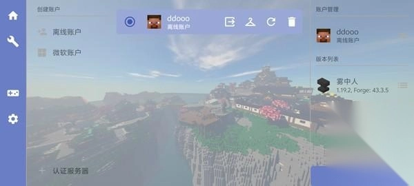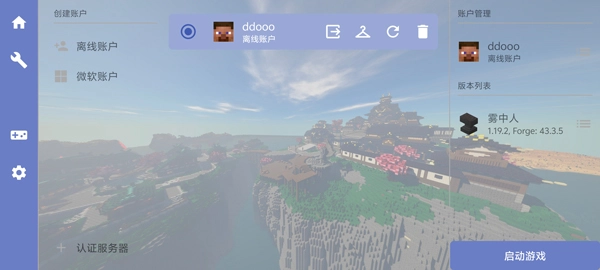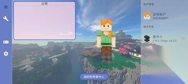 1、打开我的世界雾中人手机版,点击右上角账户;