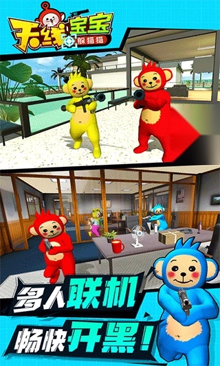 天线宝宝躲猫猫是一款趣味十足的休闲动作游戏。在游戏里,玩家能选择不同阵营参与游玩——可以化身为抓捕方的天线宝宝,运用各类武器搜寻伪装起来的对手;而躲藏方则要避免被天线宝宝发现,这样就能赢得胜利。游戏内还设有多种不同场景,能让玩家获得更丰富的游戏体验,十分有趣。此外,游戏中还有不同模式可供选择,玩家可以和其他玩家联机一起游玩。