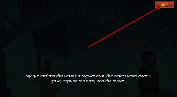 3、选择好后会有一段剧情介绍,可点击右上角的“SKIP”按钮跳过。
