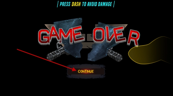 5、如果游戏失败,可以点击“CONTINUE”按钮回到主界面重新开始。