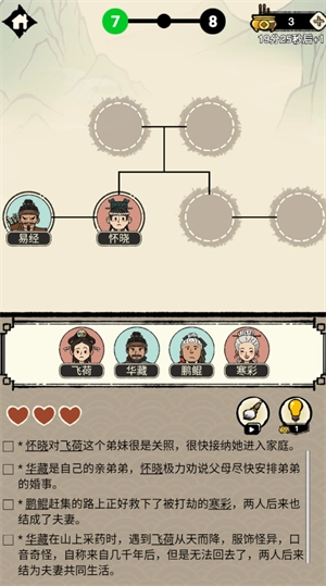 1、家族族谱修缮:玩家需搜集相关线索,准确确定家族成员在族谱里的对应位置。