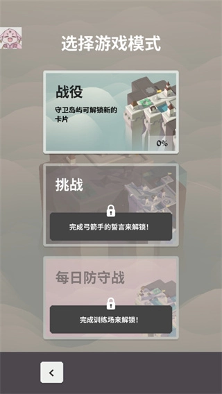 2、游戏有三个模式,分别是战役、挑战、每日防守战,刚开始只有战役,后续需要解锁。