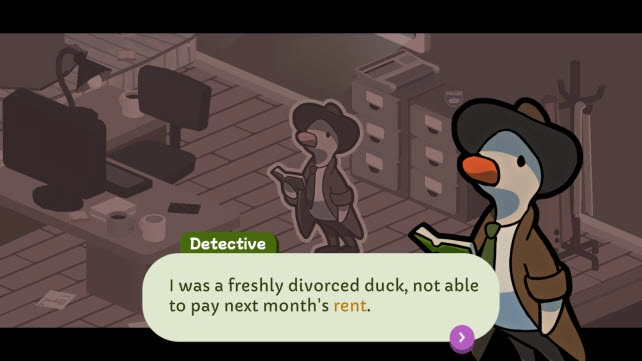 在鸭鸭侦探游戏里,玩家会化身为一名侦探——不过是只萌萌的鸭子哦。你能询问案件相关人员,获取他们的证词,再依据零散的信息片段推理出正确结论。把线索梳理清楚,找出犯人的破绽,这些棘手的谜题你能搞定吗?