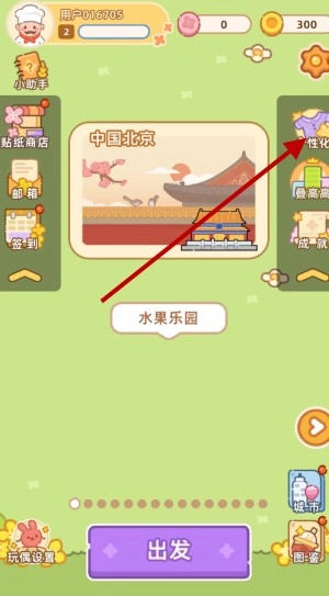 1、先回到游戏主界面,然后点击屏幕右侧的“个性化”按钮