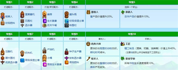 3、耕种主要通过收获农作物来提高技能等级。照顾动物也可以增加经验,爱抚、挤奶和剪羊毛或收获动物产品都可获得5点经验。使用锄头和喷壶是不会获得经验。每升级一次增加1点锄头和喷壶的熟练度。