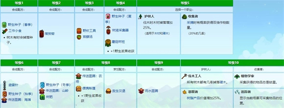 5、采集技能是通过在整个星露谷里采集物品或使用斧头砍伐树来提高的。每级增加1点斧头的熟练度。