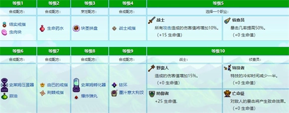 7、战斗技能是通过与怪物战斗来提高的。每级增加5点的生命值,等级5与等级10时不会增加生命值,只能通过选择战士与防御者职业增加。