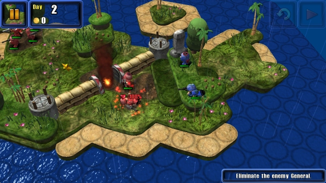 2、全3D的地形将会带给你真实的战场体验,灵活的调配自己的士兵、战车去完成对战。