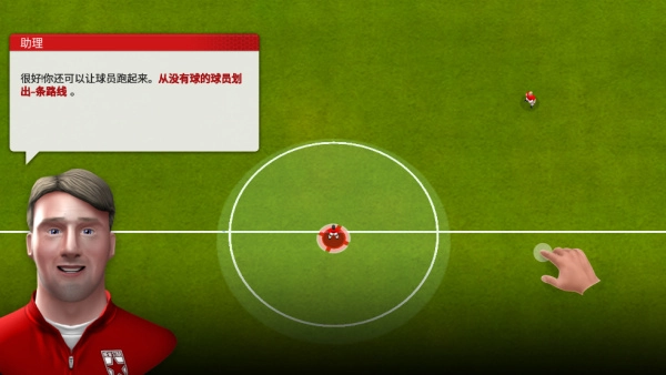 1、在球场上如果发现某名球员没有持球,只需要点击他就能把球传给他让队伍顺利推进。