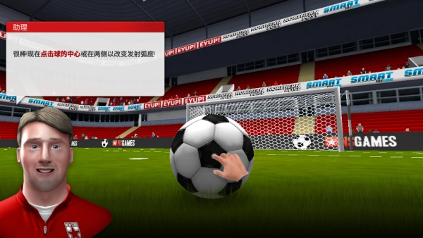 4、准备射门时,可自行选择击球点,通过不同的击球位置来影响球的弧度与轨迹,灵活进行调整能让破门得分变得更加容易。