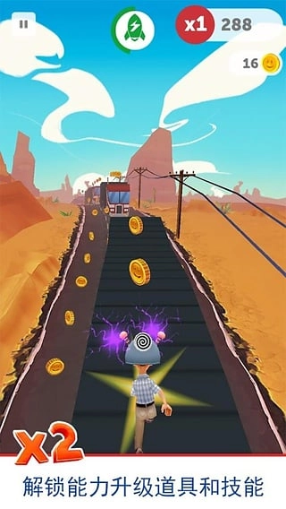 《阿甘快跑》是一款类似《地铁跑酷》的躲避类跑酷游戏,它巧妙融合了经典电影《阿甘正传》中的主角阿甘。玩家将操控阿甘在无尽的跑道上持续奔跑,操作方式与多数主流跑酷游戏相近:通过上下滑动屏幕实现跳跃和滑行,左右滑动则可切换角色的前进方向。跑道上还会随机出现各类实用道具,不仅能帮助玩家更轻松地避开迎面而来的车辆,还能让你收集到更多游戏金币。