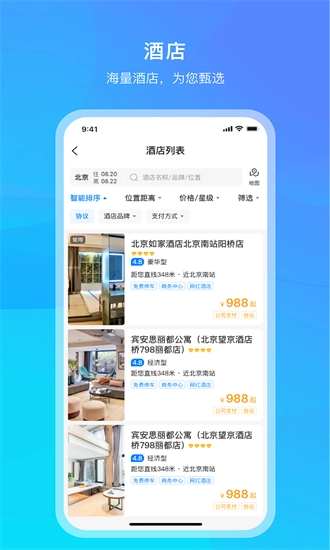 2.除了预订服务外,还提供一站式商旅服务,涵盖出行打车、外卖预订、出差交友等内容,为用户带来更多出差福利。