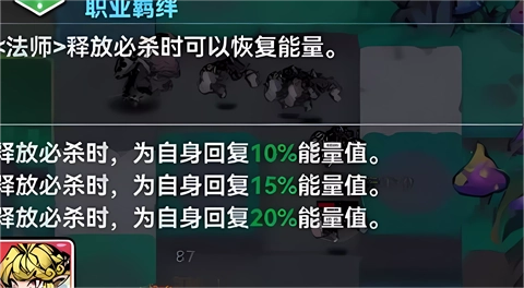 法师羁绊:释放必杀时,为自身回复10%能量值。