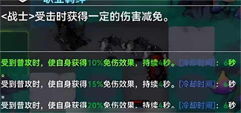 战士羁绊效果总览:受到普攻时,使自身获得10%免伤效果,持续4秒。