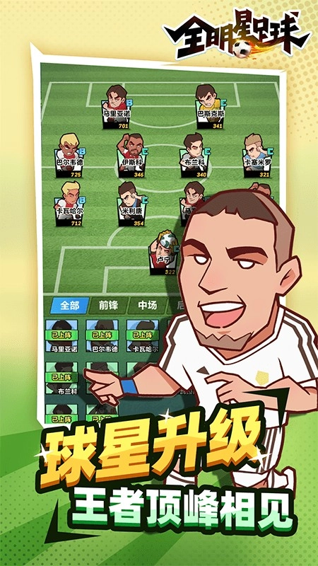 全明星足球正版游戏巧妙融合了足球经理玩法与卡牌收集元素,玩家将化身为俱乐部的管理者,亲自打造属于自己的梦幻球队。游戏中收录了梅西、C罗等数百位真实球星,采用别具一格的Q版美术风格,还设有训练场、战术中心等丰富多样的场景。玩家可以通过招募球员、强化技能以及搭配阵容,带领球队征战世俱杯、法甲等顶级赛事,感受从草根俱乐部逐步成长为豪门王朝的逆袭历程。游戏采用轻松护肝的休闲玩法,比赛过程中充满策略性,感兴趣的玩家快来下载安装吧。