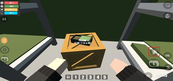 2、右下角的按键全部是都是角色的功能键位,分别是攻击、开枪、装弹、趴下、跳跃键位。