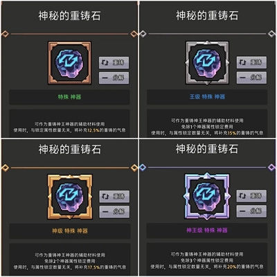 1 重铸气息满100%时,根据神器种类得重铸石: