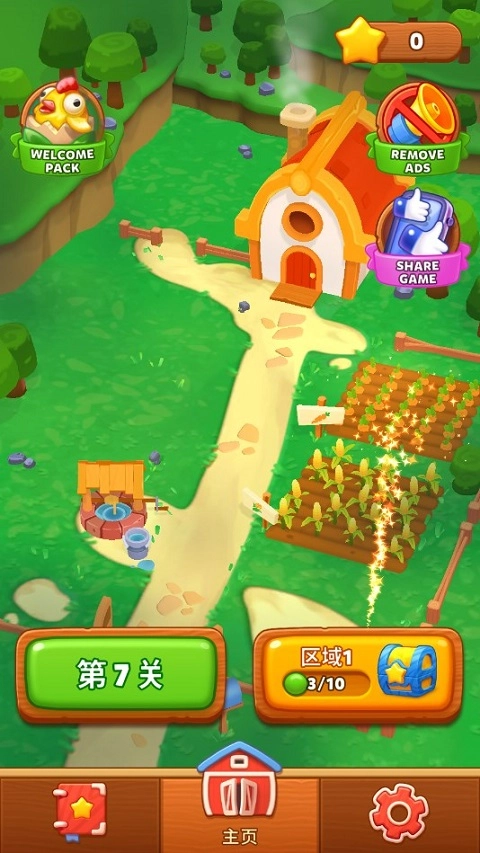 每通过一关都会获得一颗星星,累积的星星可以用来购买道具或农作物,完成农场区域的建设,并解锁新的区域和任务。