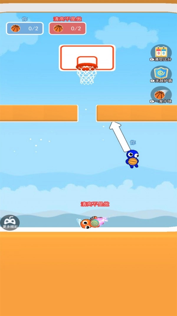 3、一场街机比赛开始了,玩家可以不断的运球,所做的都是为了将球投入篮筐。