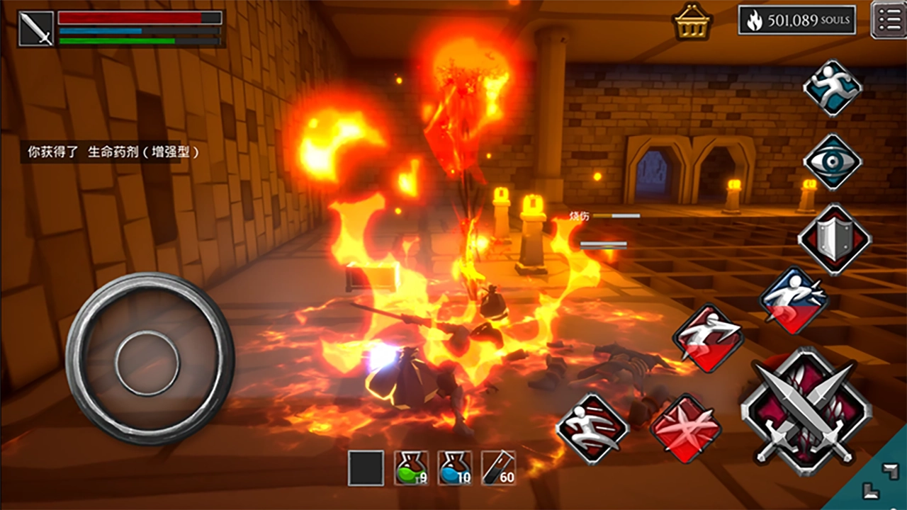 玩家每击杀一个敌人都会获得灵魂,玩家可以用灵魂购买各种道具,升级角色的属性!