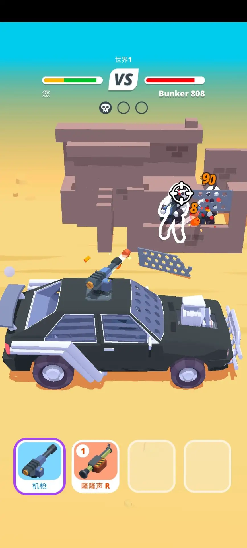 3、避开敌人的炮火,记住在其他车辆撞到你之前要避开它们,如果你受到太大的损害,你的车就会爆炸。