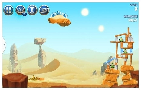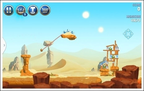 由于小鸟离猪猪的距离太远了,直接打的话,肯定不行,唯有借助中间的那块石头了