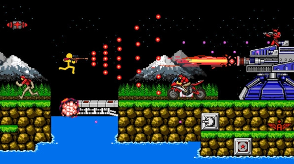 1、经典街机画风搭配火柴人流畅的射击、翻滚、换弹动作,营造紧张刺激的闯关氛围。