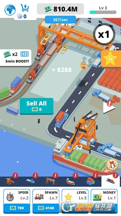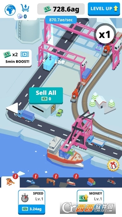 你要做的,就是不断点击,建造、建造、再建造。 点击游戏屏幕,添加集装箱,把它们装满,运输这些货物,升级,然后赢取胜利!