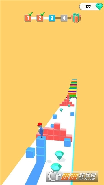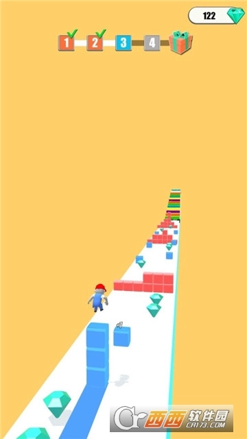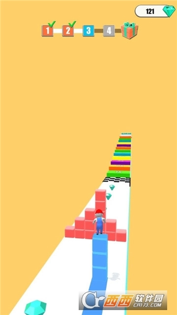 这是一款趣味十足的动作闯关游戏。玩家在游戏里操控小人,踩着各种造型的方块展开冒险。收集赛道上的方块能让你变高,可碰到挡路的障碍就会失去部分方块。不过有时候并非越高越有利,因为有些障碍也很高,得从它们之间穿过去,这就需要你巧妙控制自身高度啦。