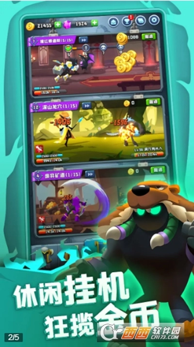 4、经典魔幻题材搭配全新的画风与世界观,定能带给你耳目一新的体验,轻松休闲的玩法,支持自动挂机,即使离线也能获得收益。