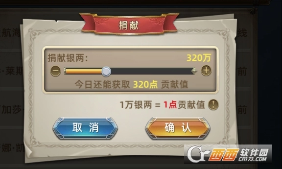 每天在联盟内捐献银两,可以获得相对应的联盟贡献,但每天捐献银两获得的联盟贡献是有限的,每当联盟等级提升时,每天能获得的联盟贡献也会略微提升。
