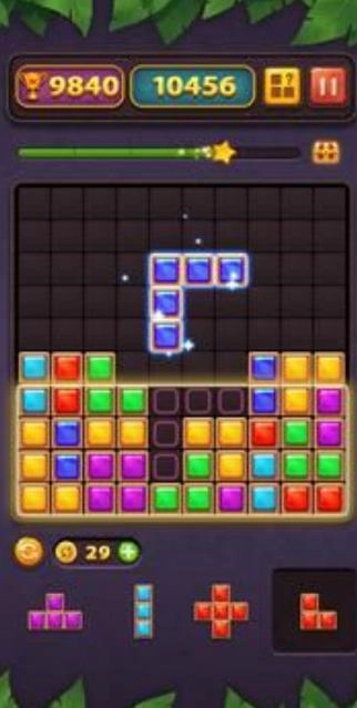 1、益智类头脑,酷炫清除,非常经典七巧板玩法,将格子拖进旗盘中拼凑清除,清除动画特效绚丽酷炫,闪爆你的目光。