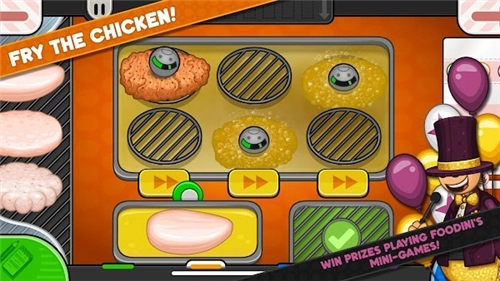 给鸡肉涂上各种面包屑和面糊,然后将鸡肉放入油炸锅中烹饪至完美!PapaLouie需要在竞争中获得优势,所以随着时间的推移,他可能会开始引入除鸡肉以外的其他食物来炸!
