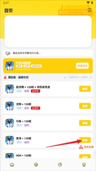 1.打开画质鸭助手,然后选择你希望解锁的游戏画质
