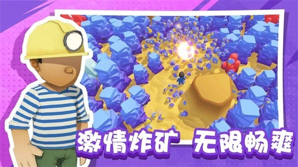 这款以爆破挖矿为核心的休闲游戏简直让人欲罢不能,玩家化身为矿山的继承者,手持各式各样的炸药开启自己的财富积累之路。从最初简陋的土制炸弹,到后来先进的高科技爆破装置,每一次引爆都能带来矿石四溅的畅快体验;看着开采出的矿石被提炼成金锭,再进一步加工成各类商品,最后通过小火车运送至市场,整个生产流程都充满了满满的成就感。游戏凭借简单的操作方式,还原了真实的采矿过程,震撼的爆炸特效搭配清脆的音效,让人特别解压,还能解锁各种搞怪服装来增添游戏的趣味性,喜欢这种爽快挖矿玩法的朋友,快来尝试一下吧。