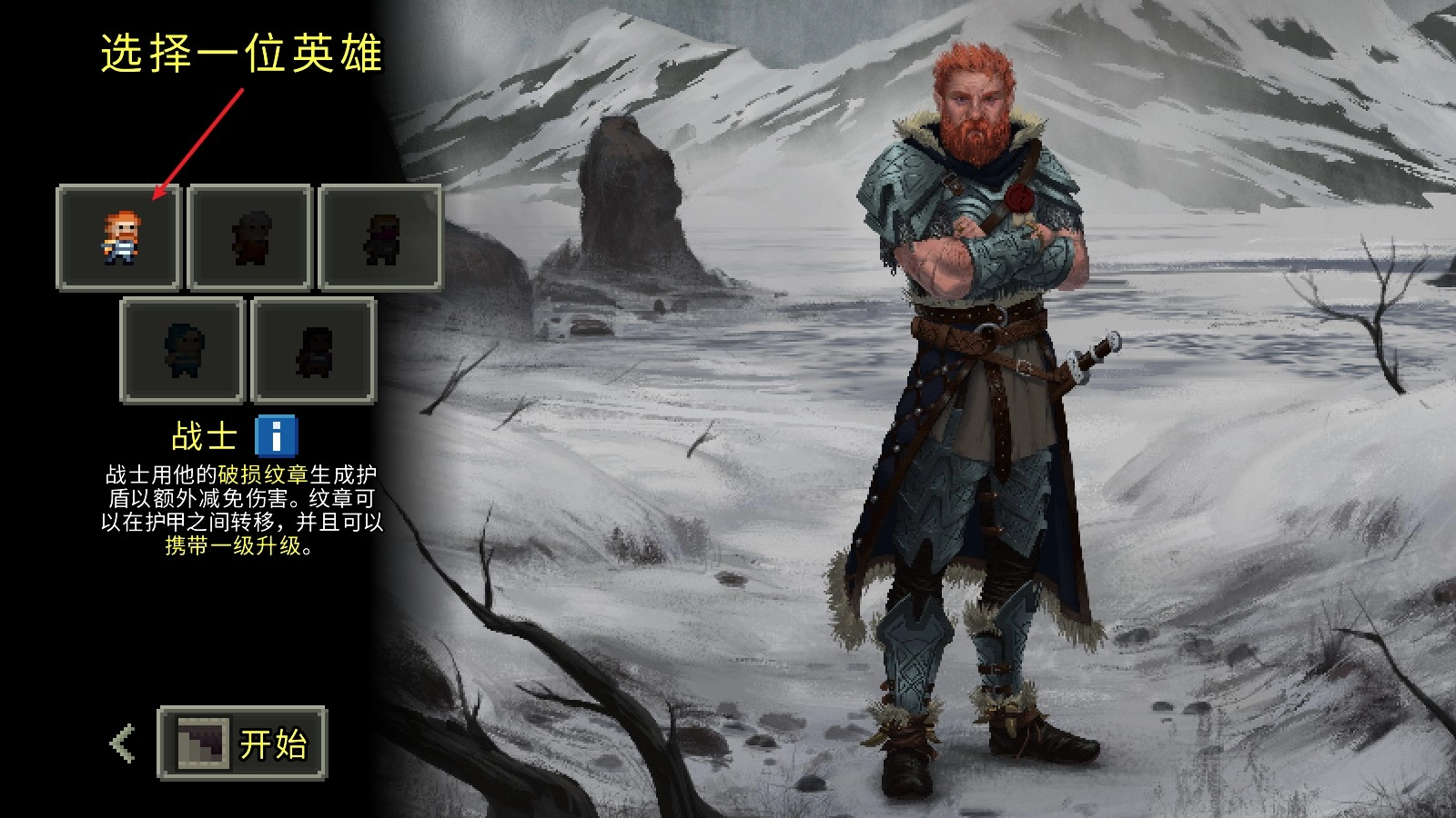 1、进入游戏后,首先要选择一名英雄,刚开始只有战士可供使用。