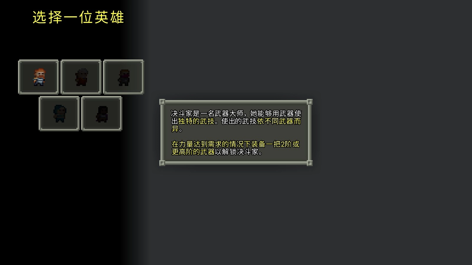 4、决斗家:在力量达到需求的情况下装备一把2阶或更高阶的武器以解锁决斗家。
