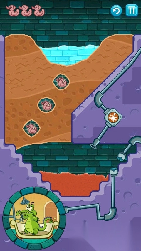 玩家需通过手指划动屏幕开凿土壤,引导水流避开障碍,最终将水引入小鳄鱼的浴缸中。每一关都设计有不同挑战机制,例如收集三只鸭子、操作机关门、应对多种流体互动等,充分考验玩家的逻辑思维与操作技巧。