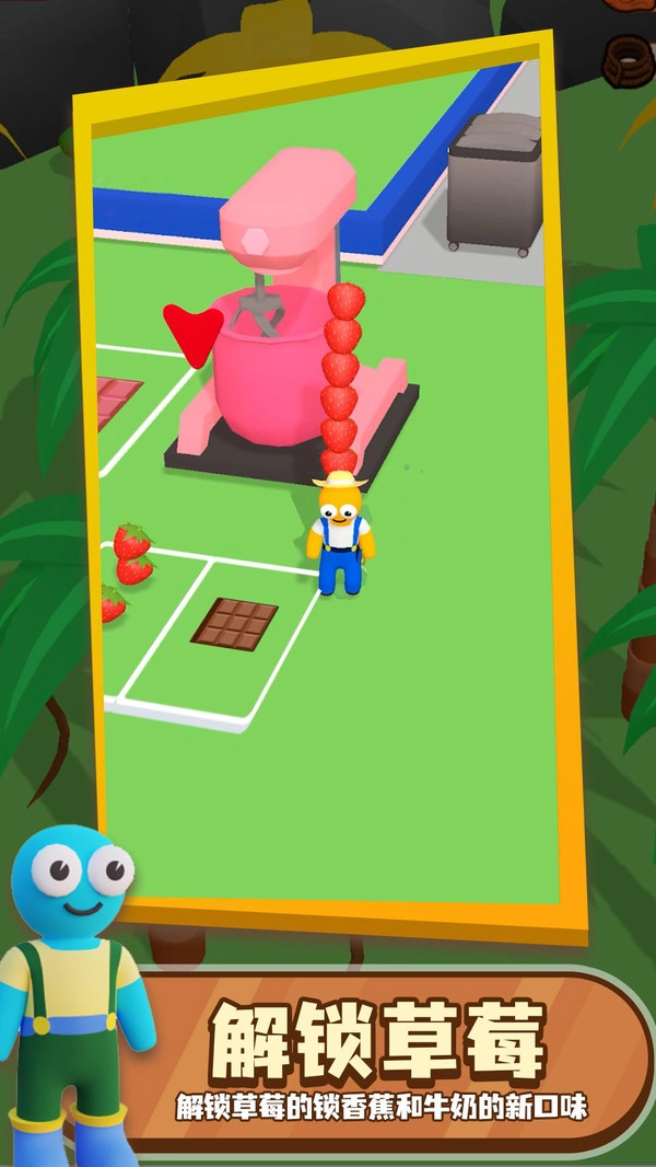 2、用草莓、香蕉和牛奶等新材料解锁新口味,雇用工人并购买新的巧克力工厂。
