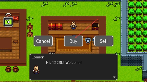 3、进入商店场景后,与NPCConnor互动,可选择Buy购买物品、Sell出售物品或Cancel取消操作,以此完成游戏中的交易相关环节。