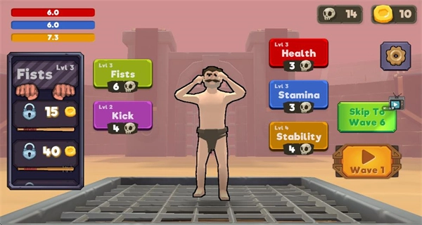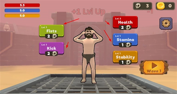 3、等级提升后,消耗对应道具解锁技能,如拳头、踢击等,增强角色战斗能力,提升对战优势。