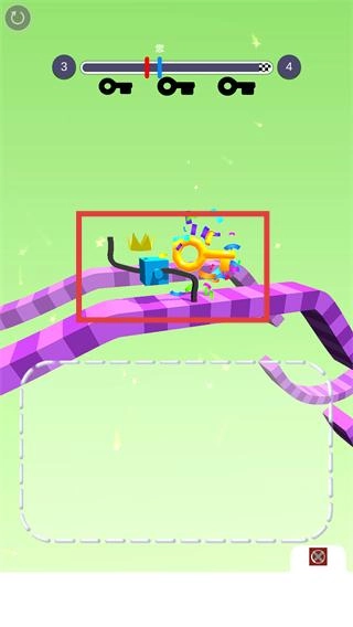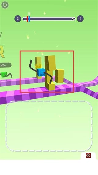2、进入关卡后,根据【3】的提示,在指定区域绘制适配的腿部形状,助力方块向【4】的终点移动。