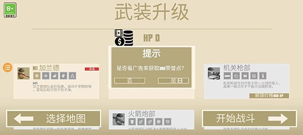 2、可以完成任务来获得荣誉点来解锁新的兵种。